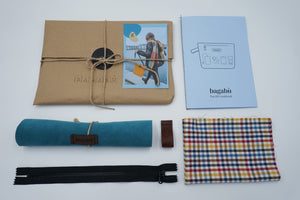 The Kit will include materials needed to craft your own Bagabù Mini Toiletry Bag. In the craft’s box, you will find the outer shell for the bag, lining, zipper, a handle and carefully written instructions. Materials provided are as always - upcycled and sustainable.