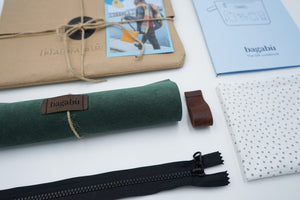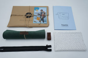 The Kit will include materials needed to craft your own Bagabù Mini Toiletry Bag. In the craft’s box, you will find the outer shell for the bag, lining, zipper, a handle and carefully written instructions. Materials provided are as always - upcycled and sustainable.